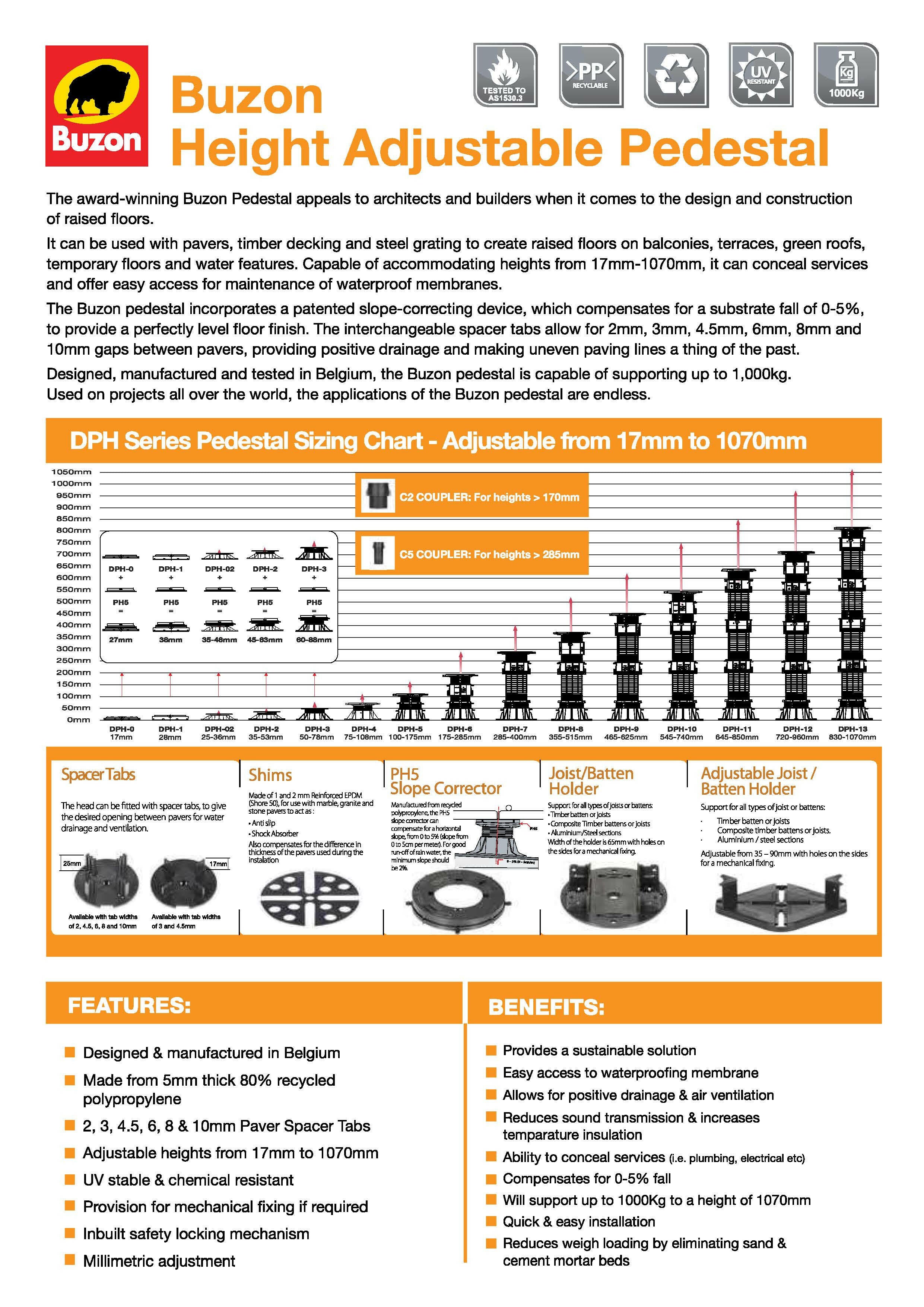 Buzon Spacer Tabs are essential accessories designed to streamline and enhance the installation of Buzon pedestal systems for raised flooring applications. These innovative tabs ensure precise spacing, alignment, and drainage between pavers, resulting in a professional and long-lasting finish.